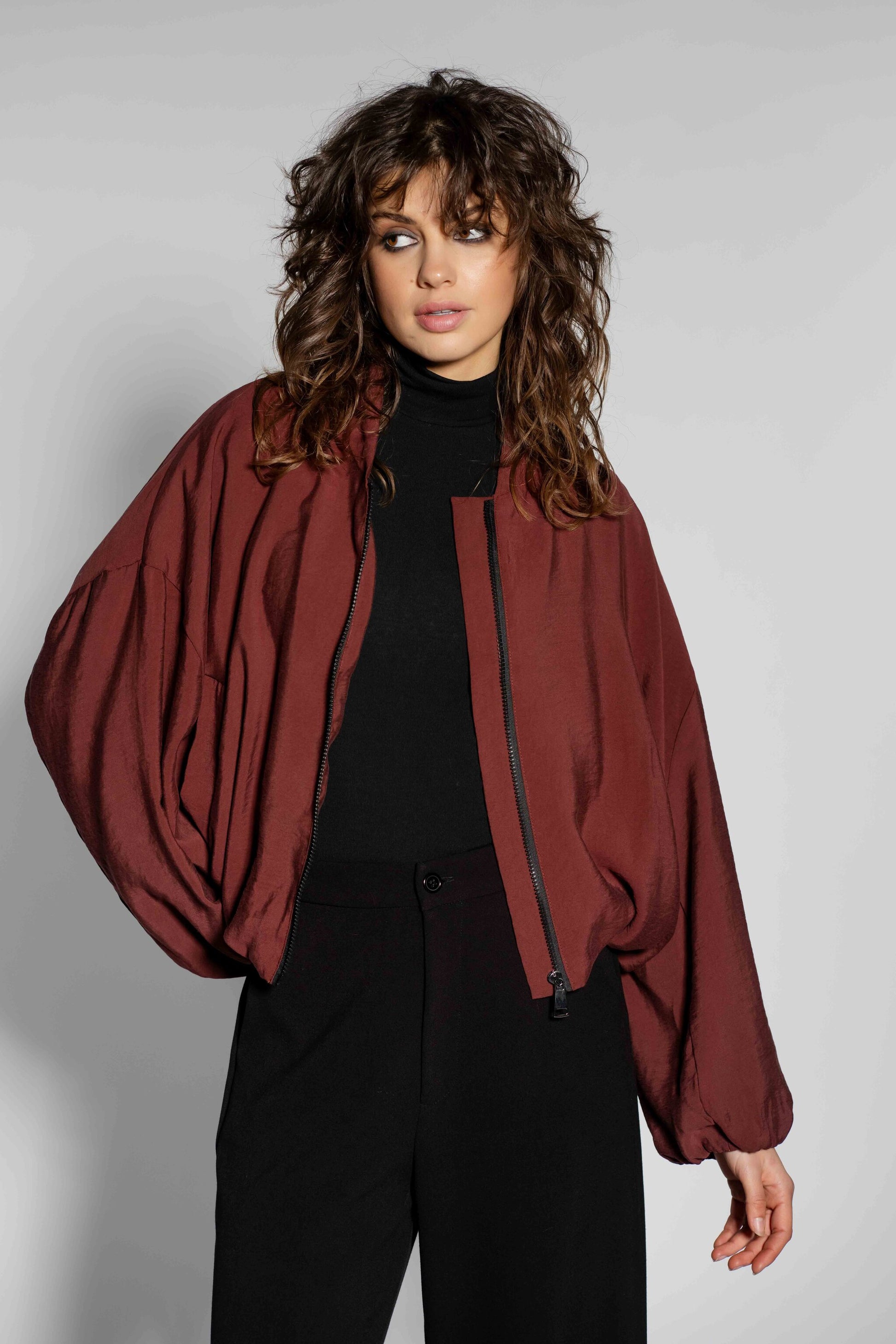 Entscheiden Sie sich für einen modernen Look mit dieser wunderschönen Bomberjacke in einer satten, kräftigen Farbe. Sie besteht aus 89 % Modal und 11 % Polyester und ist ein wunderbar weicher Stoff mit luxuriöser Haptik. Die Jacke hat eine entspannte Passform, einen stylischen Reißverschluss und weite Ballonärmel, die dem klassischen Bomber-Stil eine einzigartige, feminine Note verleihen.