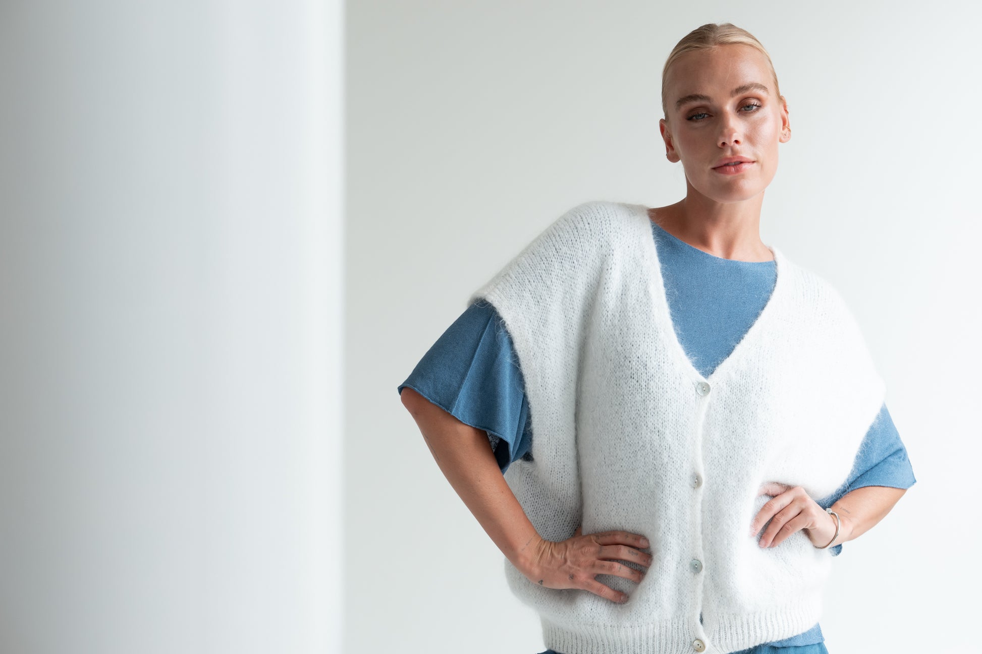 Cardigan Sofia is een elegante en comfortabele knit met een luxe uitstraling. Dankzij de rijke mix van mohair en wol voelt het vest heerlijk zacht en licht aan, terwijl de toevoeging van polyamide, acryl en elastaan zorgt voor vormvastheid en draagcomfort. De fijne structuur en relaxte pasvorm maken deze cardigan perfect voor dagelijks gebruik.