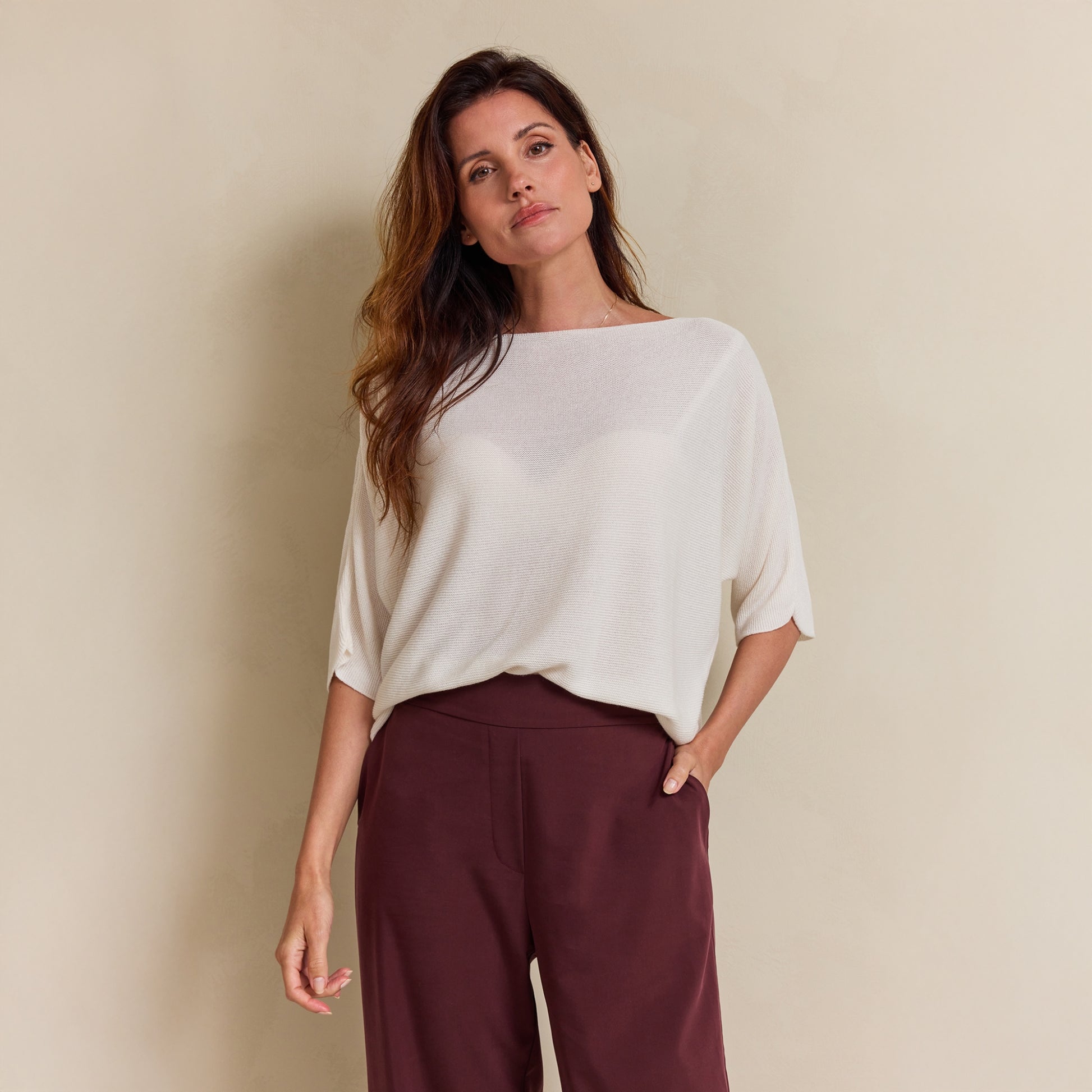 Pull Djara is een comfortabele, fijngebreide trui met een ontspannen en vrouwelijke uitstraling. De wijde hals en losse pasvorm zorgen voor een nonchalante look, terwijl de zachte kwaliteit mooi soepel valt. Dankzij de korte mouwen is deze pull perfect voor het voorjaar, de zomer of als licht laagje in het tussenseizoen.