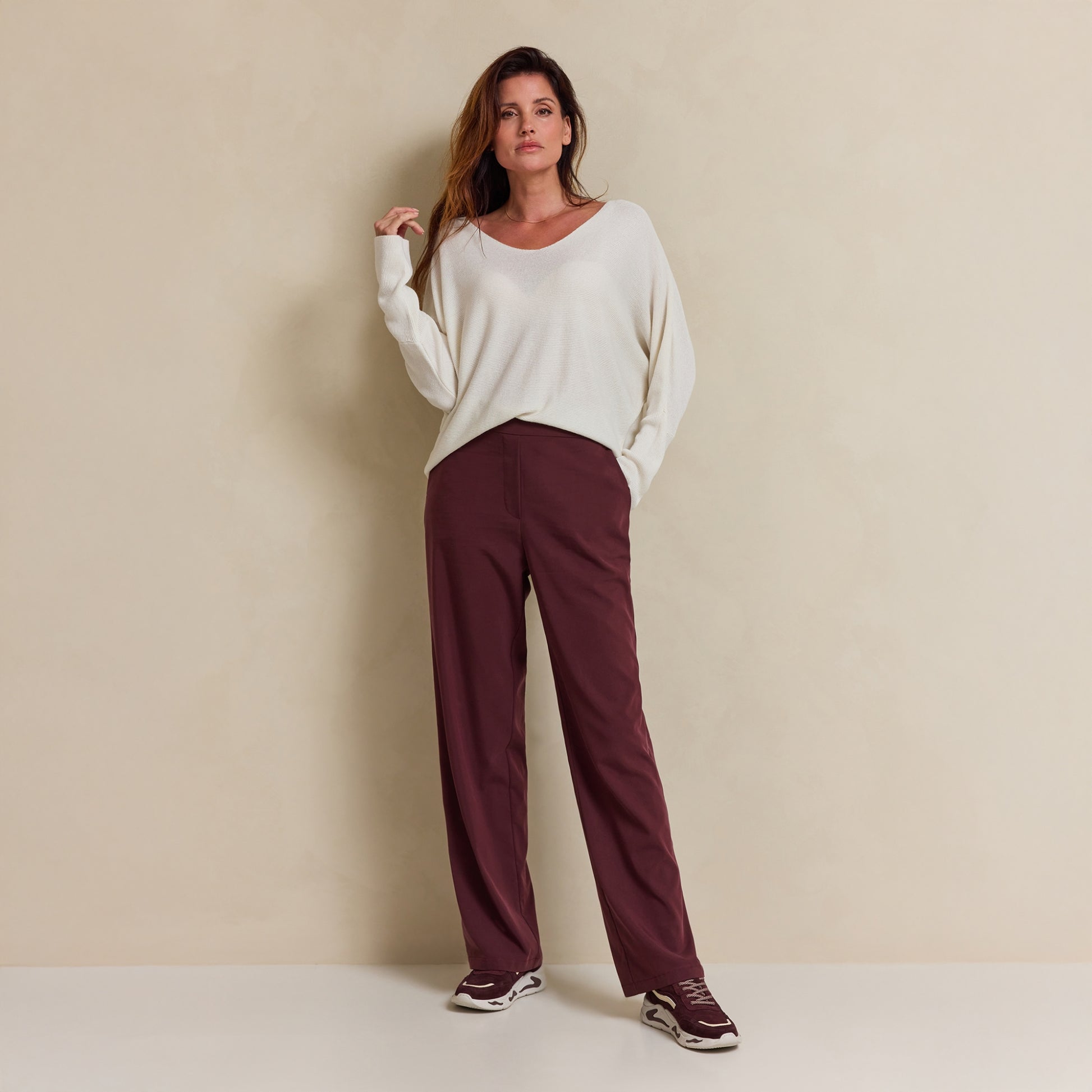 De trui heeft een moderne, iets oversized snit met subtiele mouwboorden, waardoor hij zowel casual als chic gedragen kan worden. Combineer met een jeans voor een everyday look of met een rok of pantalon voor een meer geklede uitstraling.